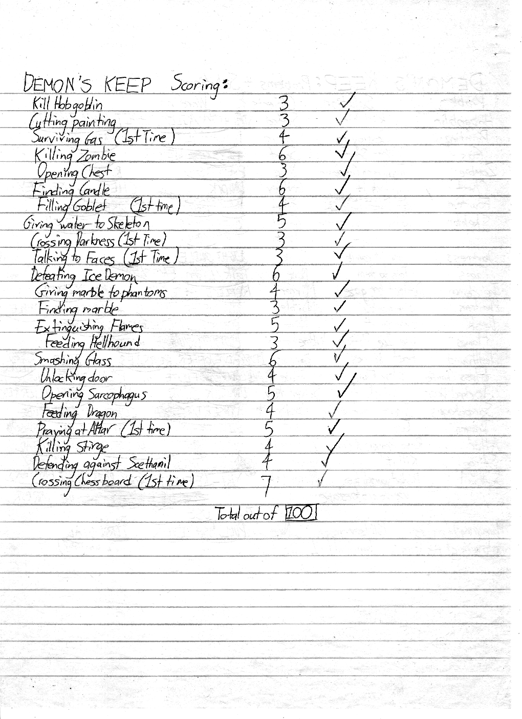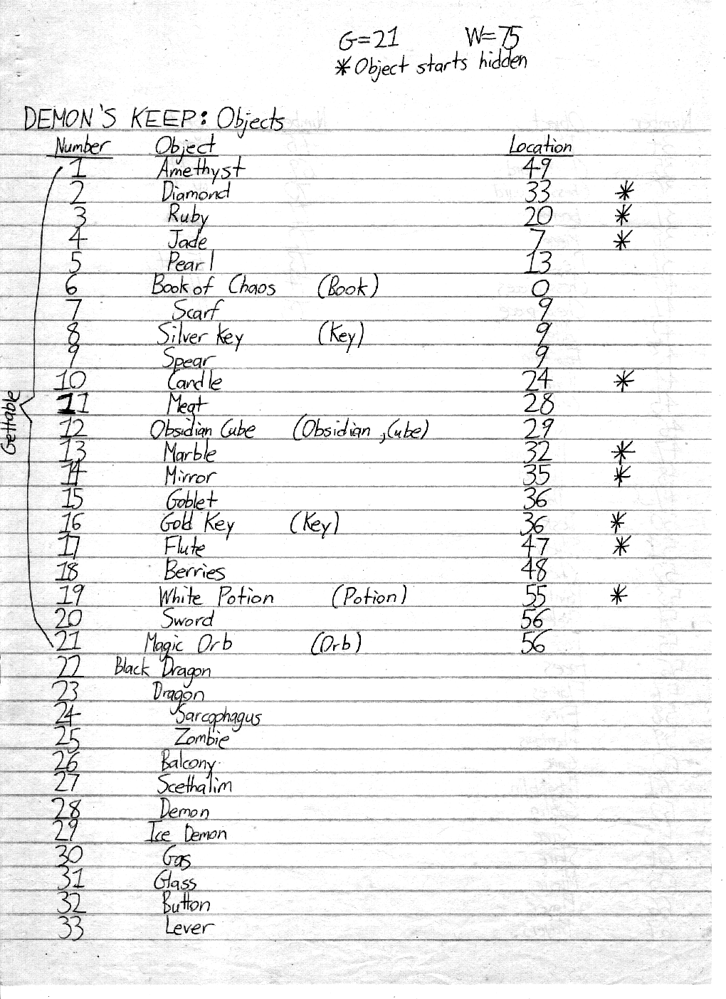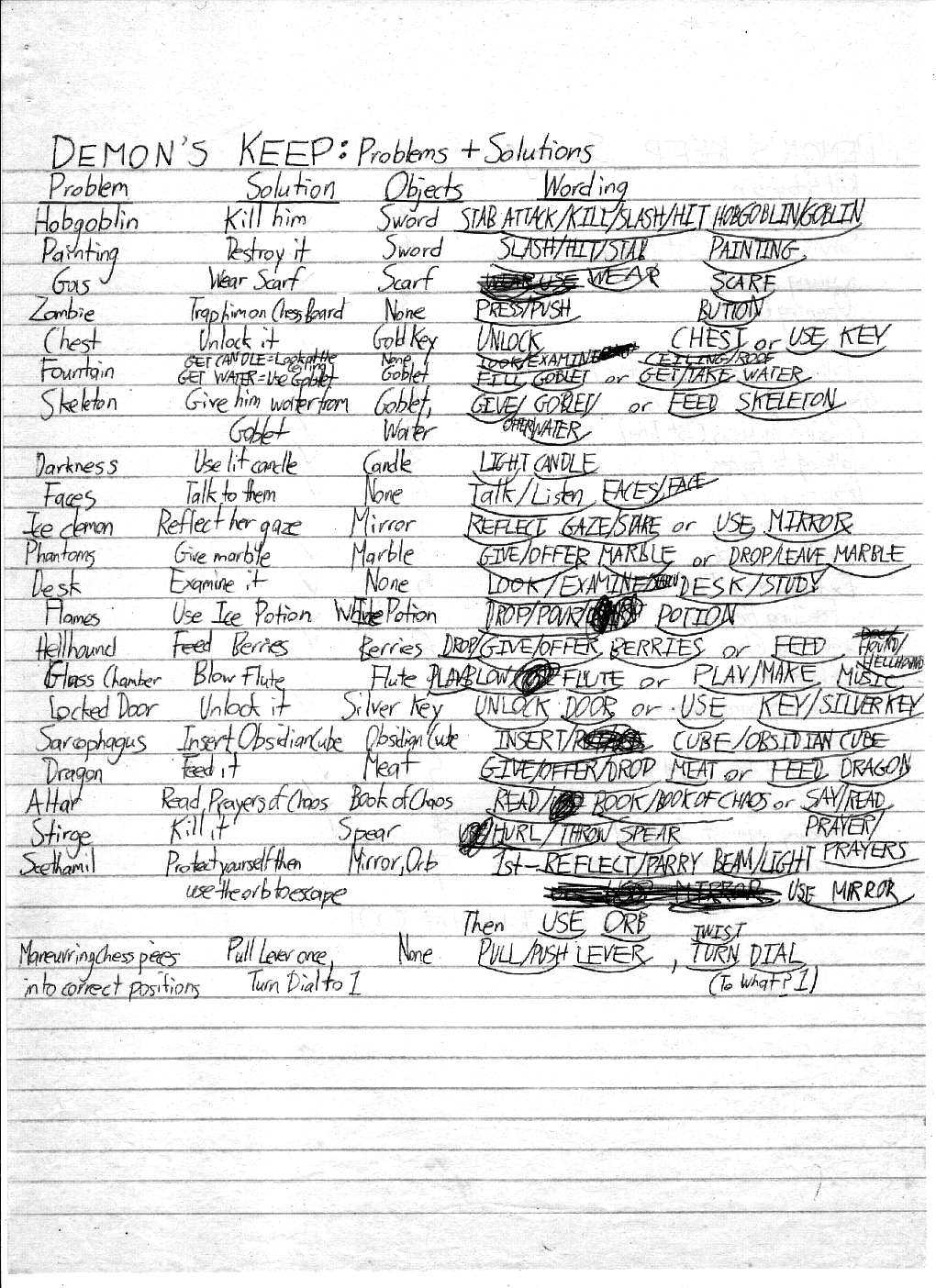 Below are my design notes for Demon's Keep. Click any thumbnail to view a full size scan of that page.